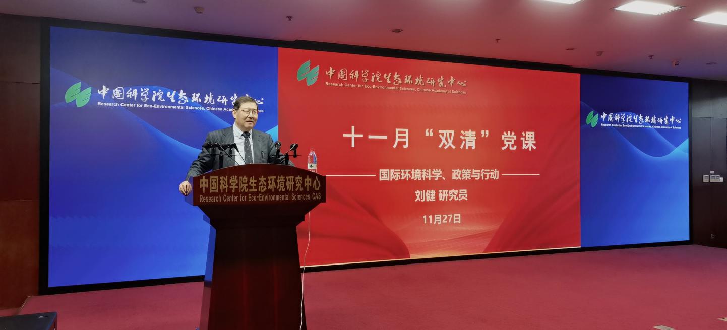 11月27日上午,中心在环境科学楼报告厅举办十一月第二期“双清”党课。本次党课特邀联合国环境署前首席科学家、科学司原司长刘健研究员作专题报告。中心主任朱永官院士,党委副书记、纪委书记占剑,党委委员、中心副主任胡承志研究员出席,各党支部职工及学生党员100余人参加。党课由党委副书记许航主持。