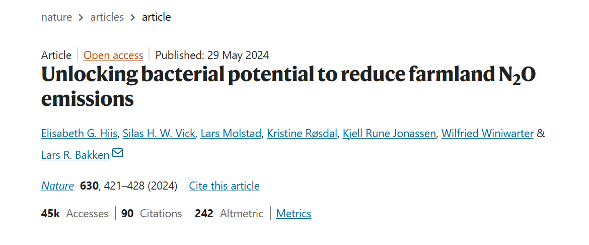 文章标题:Unlocking bacterial potential to reduce farmland N2O emissions