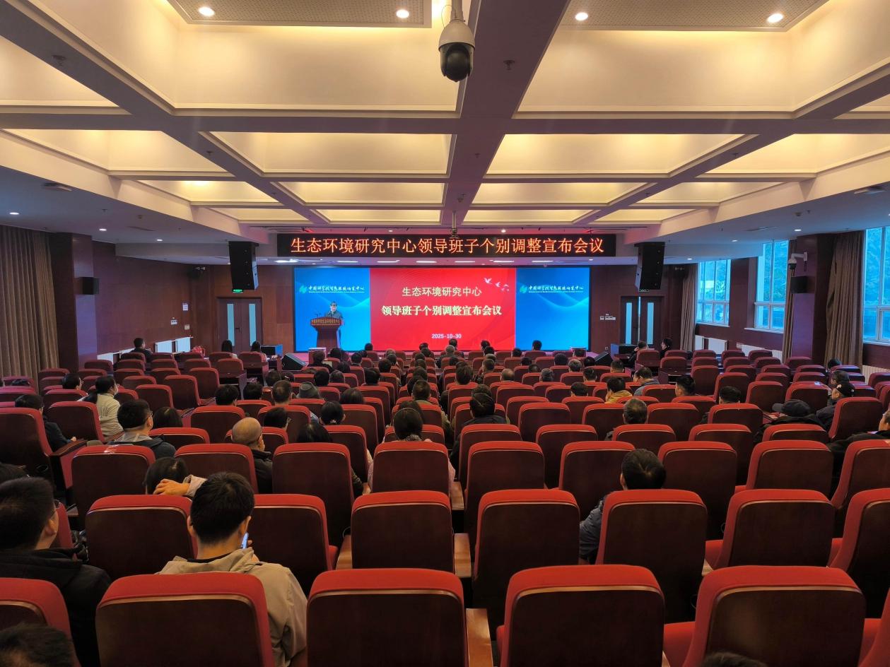 10月30日上午,中国科学院生态环境研究中心领导班子个别调整宣布会议在环境科学楼报告厅召开。中国科学院人事局副局长蔡宏志、中心领导班子成员、两委委员、支部书记、科研和管理骨干等出席会议。