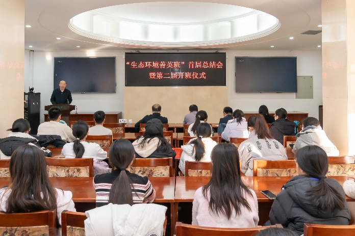 首届“生态环境菁英班”学生代表胡宇赫结合自身科研实践经历,分享了在中心导师指导下参与课题研究、发表学术论文的收获与感悟,表达了未来持续深耕科研、服务生态文明建设的坚定决心。第二届学生代表应雅雯在发言中表示,将倍加珍惜这一宝贵平台,夯实专业基础,努力将理论知识转化为解决实际环境问题的能力,立志成长为兼具家国情怀与国际视野的生态环境领域创新人才。